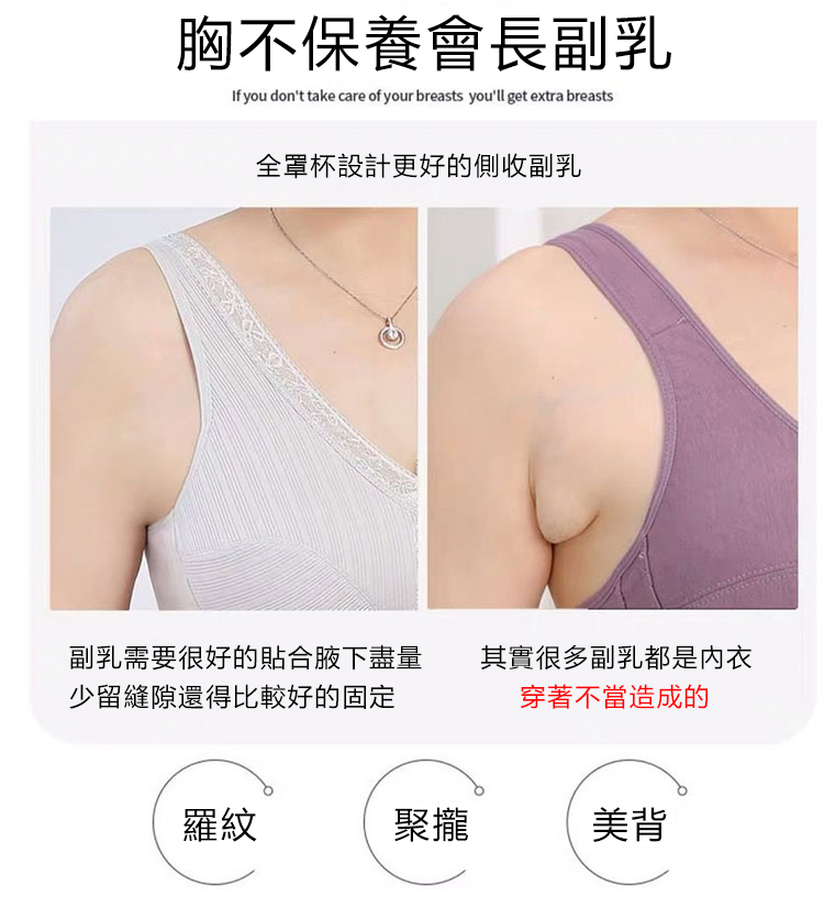 垂直的剪裁設計能夠鎖住側邊肉肉 並往前推進罩杯裡